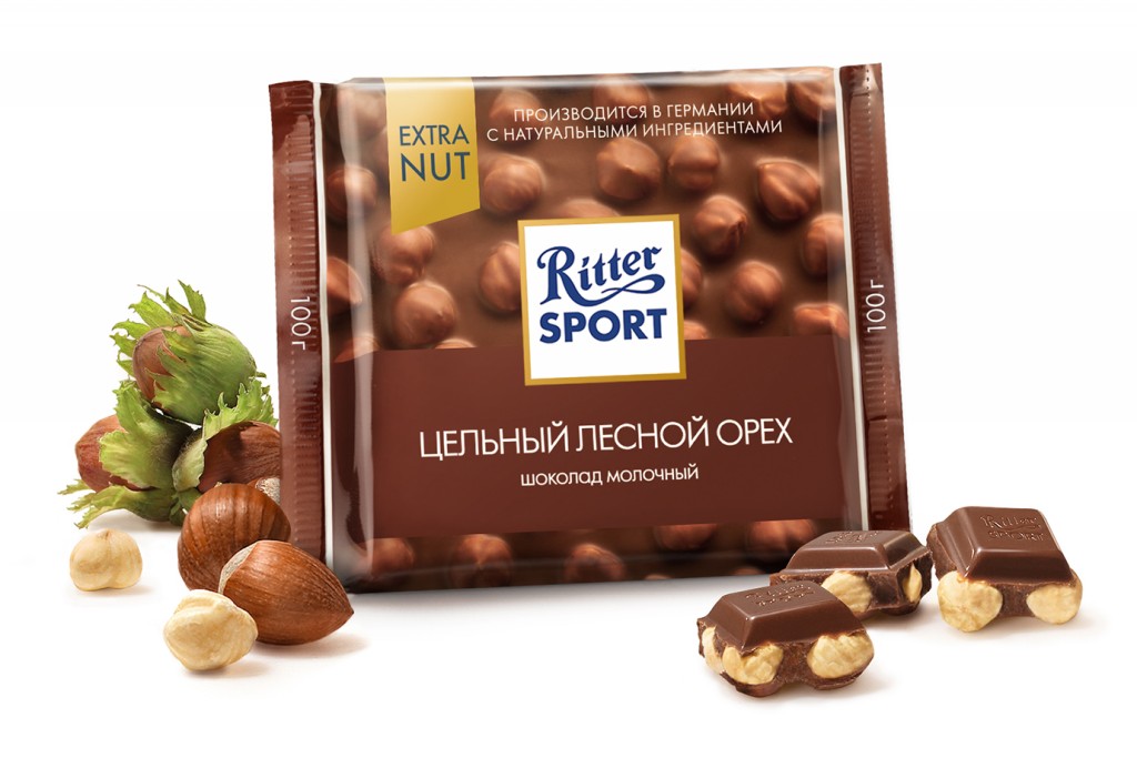 Шоколад Ritter Sport молочный с цельным обжаренным лесным орехом, 100г.